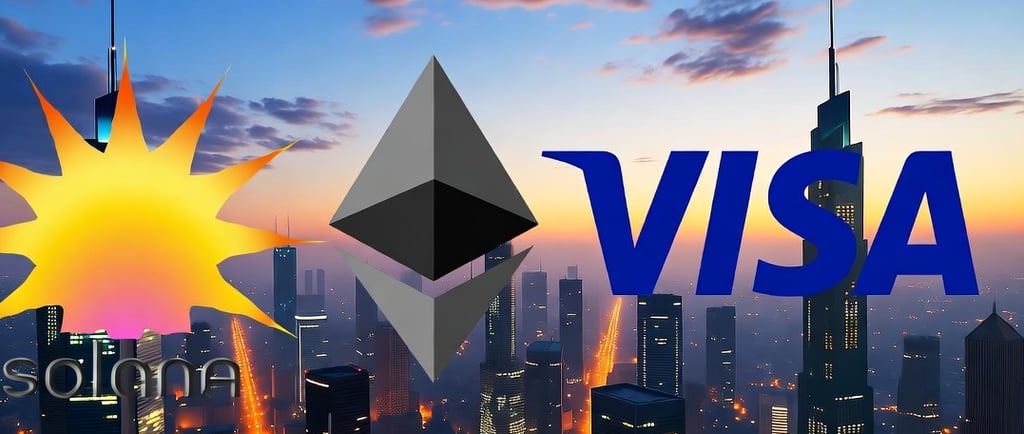 Về công nghệ, Visa không giới hạn ở một chuỗi mà đa dạng hóa trên bốn blockchain hàng đầu: Ethereum (ETH) cho settlement lớn, Solana (SOL) với tốc độ cao và phí thấp, Stellar (XLM) chuyên cross-border, và Avalanche (AVAX) cho scalability.